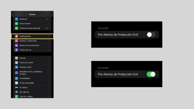 Para comprobar la activación de ES-Alert en iOS tendremos que acceder a ‘Ajustes’. Tendremos que buscar la opción ‘Notificaciones’. Una vez dentro, deslizaremos hasta llegar al final de la página. Es ahí donde debe aparecer un apartado que lleva el nombre del sistema de emergencias. En el caso de que aparezca desactivado, tendremos que seleccionar sobre la opción correspondiente para que esté operativa.
