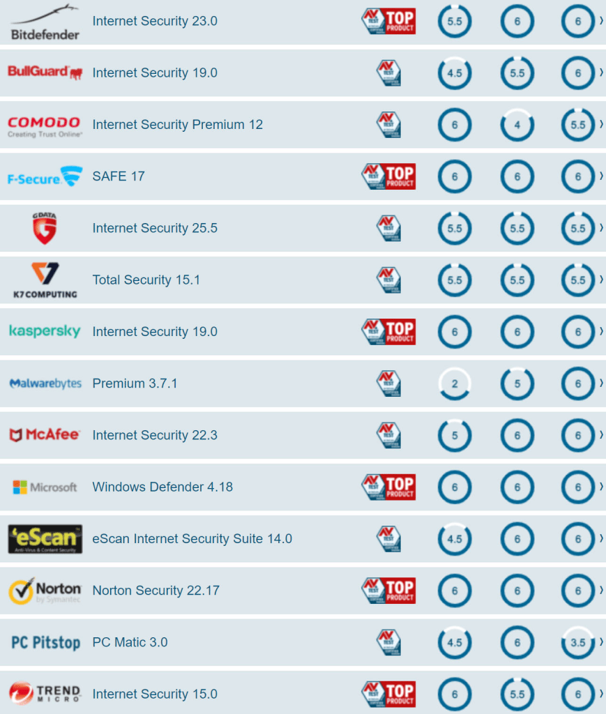 En esta comparativa de AV TEST, podemos apreciar la valoración que obtiene Windows Defender en 2024.