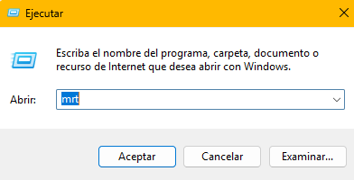 Una vez concedido el permiso en la ventana emergente que nos aparecerá tras presionar en «Aceptar», nos aparecerá el menú de selección de la herramienta MSRT, donde deberemos elegir el tipo de análisis que deseamos ejecutar.