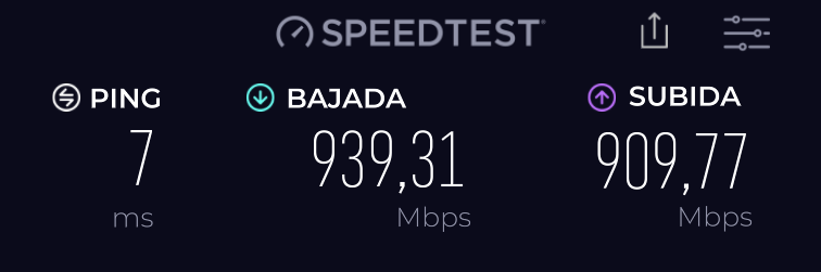 Por ejemplo, si tenemos contratados 500 Mbps simétricos mediante fibra óptica, deberíamos obtener resultados muy cercanos a esa cifra tanto de bajada como de subida. Sin embargo, si estamos conectados mediante WiFi con mala cobertura o ADSL, los resultados pueden caer bruscamente, incluso por debajo de los 50 Mbps.