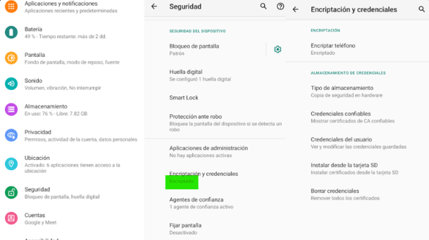Si nuestro dispositivo no incluye el cifrado automático o utilizamos una versión antigua de Android, podemos activarlo manualmente siguiendo los siguientes pasos: